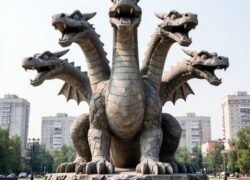 Огромная скульптура дракона высотой 15 метров с остроконечным хвостом, когтями и чешуёй в определённые часы начинает рычать и выпускать из пасти огненные языки. Хотите увидеть это своими глазами???