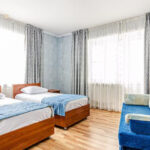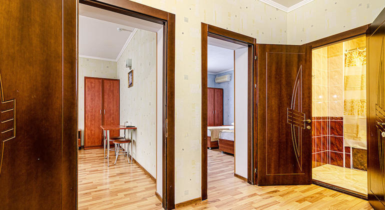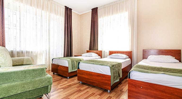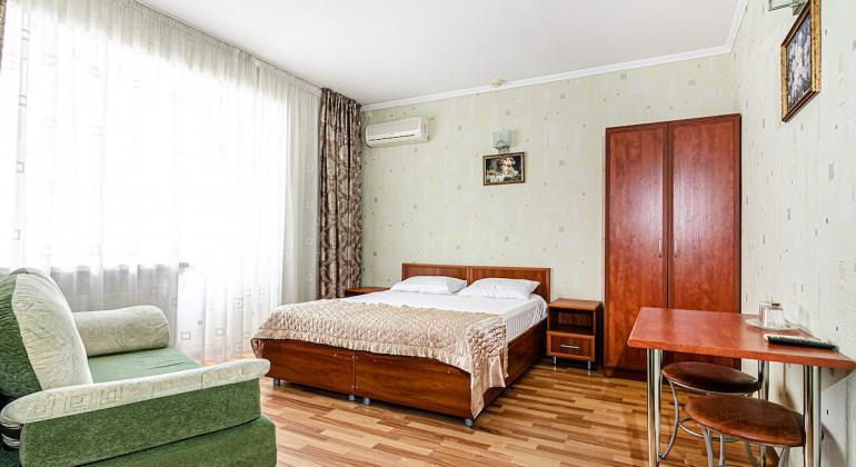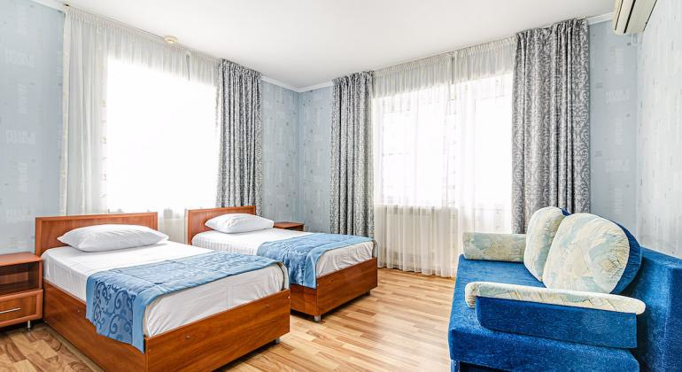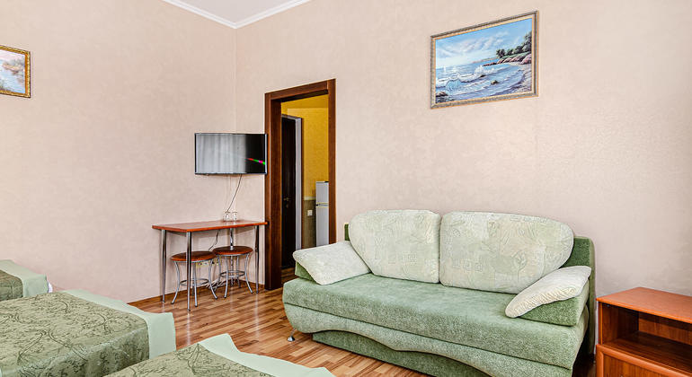 В номере: удобная мебель, красивые диваны, телевизоры и холодильники, сплит-системы, балконы. В ванной комнате есть фен, гигиенические средства, санузел совмещен с ванной.