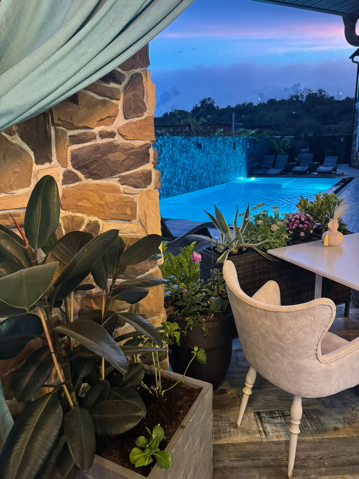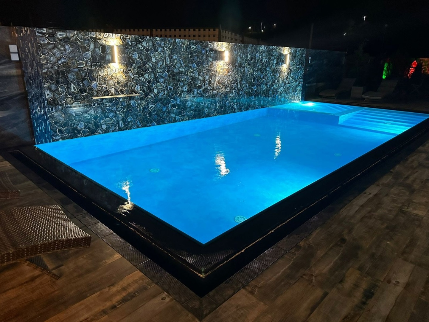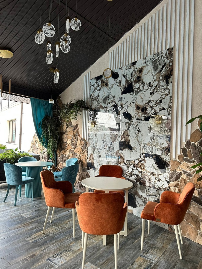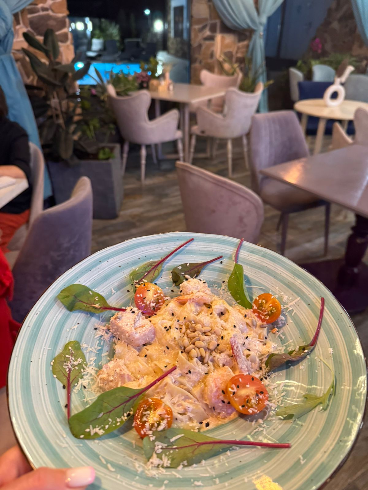 Есть терраса и открытый теплый бассейн с детской зоной. А также круглосуточный ресепшен, ресторан, бильярд, настольный теннис и футбол.