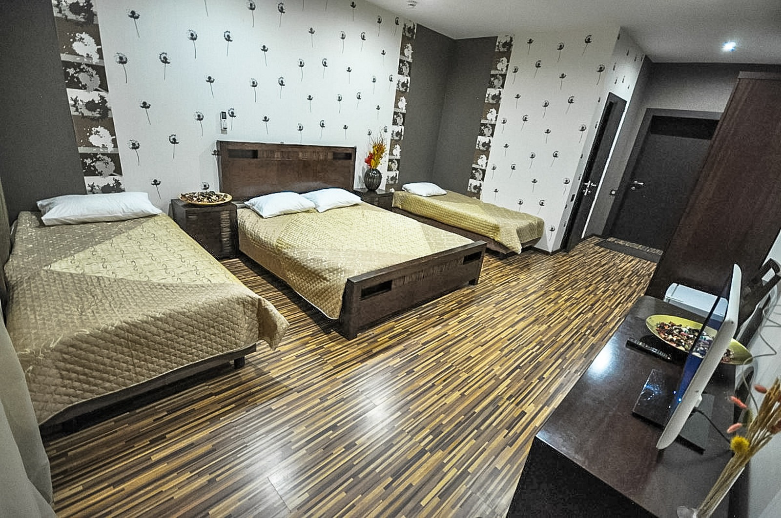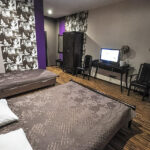 В номере: Во всех номерах: собственный санузел, душ, холодильник, чайник, кабельное ТВ, Wi-Fi.