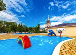 Бассейн находится на закрытой территории пансионата. Посещение бассейна входит в стоимость путёвки.